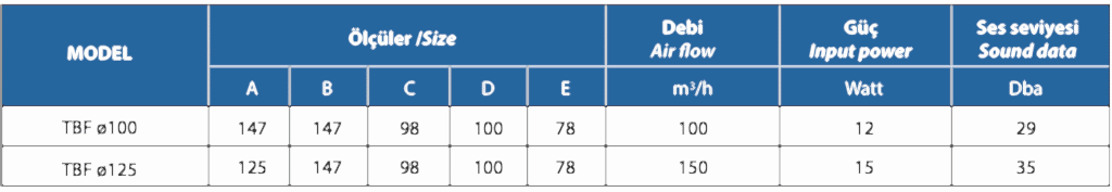 TBF-100, 120, 150, 200 AKSİYAL FAN