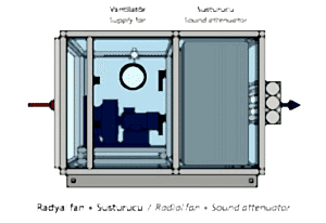 THKS model santrallerde susturucular vantilatörden sonra, torba filtreden önce konulmaktadır. Aspiratör susturucuları ise hemen aspiratörden önce konulmaktadır. WC aspiratör kabinine doğrudan baglanabilirler. Ancak radyal vantilatörlü uygulamalarda, havanın uygun olarak dağıtabilmesi için vantilatör ile susturucu arasına 600mm boyunda deflektörlü bir plenum yerleştirmektedir.