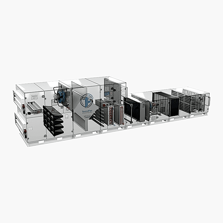 THKS modeli hijyenik klima santralleri günümüzün ilerleyen klima teknolojisinin bir gereksinimi olarak, özellikle ameliyathaneler, doğum odaları, yoğun bakım odaları, elektronik ve optik sanayi gibi yüksek iç hava kalitesi (IAQ) ve partiküllerden arındırılmış ortam gereksiniminde olan, US Federal Standart 209E’ye göre Class-1 ile Class-100.000, EN ISO 14644-1’e göre M1.5 lla M6.5 ve Alman VDI 2803/1’e göre Class-0 ile Class-7 olarak sınıflandırılmış olan mahallerin ihtiyaçları göz önüne alınarak tasarlanmış ve imal edilmiştir.
